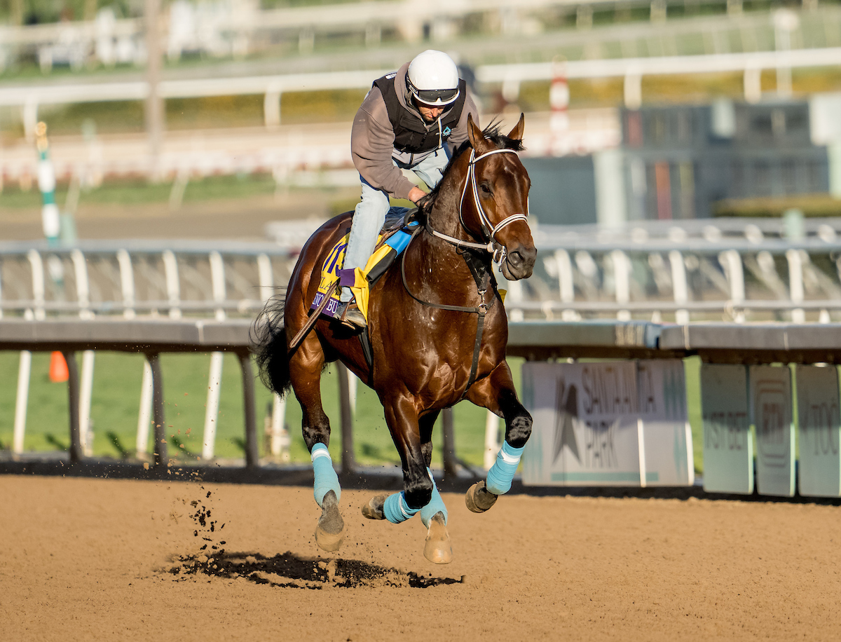 Senor Buscador, trained by Todd W. Fincher, exercises during morning workouts at Santa Anita Park in Arcadia, California on October 30, 2023 as horses prepare for the 2023 Breeders Cup World Championships. Scott Serio/Eclipse Sportswire/Breeders Cup
