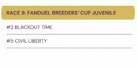 2025 Breeders' Cup Juvenile Odds and Post Positions