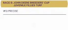 Precise will not line up in tonight’s @BreedersCup Juvenile Fillies Turf