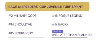 2025 Breeders' Cup Juvenile Turf Sprint Odds and Post Positions