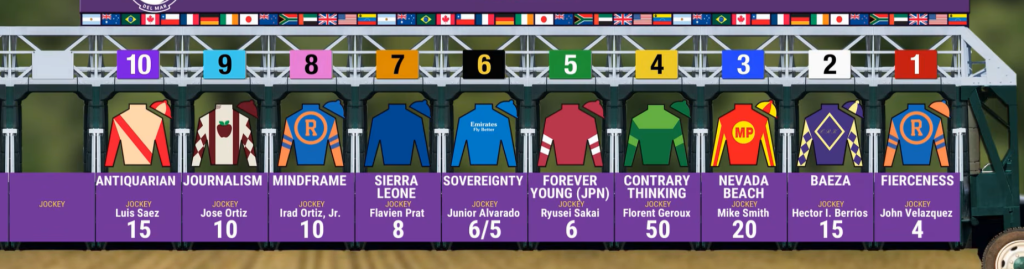 Fierceness (trainer Todd Pletcher) is the older 4-year-old who has been quietly brilliant this year. His victory in the Pacific Classic at the same mile‐and‐a‐quarter distance at Del Mar shows he belongs in this upper echelon. He may not carry the top billing, but he’s absolutely in the win conversation.