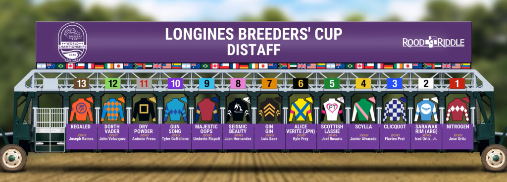 Update 10/27/2025 8:00 PM ET: Post positions are in for the Breeders’ Cup Distaff (G1). Connections of Scottish Lassie were all smiles after drawing post position 5, a prime spot for their front-running mare.