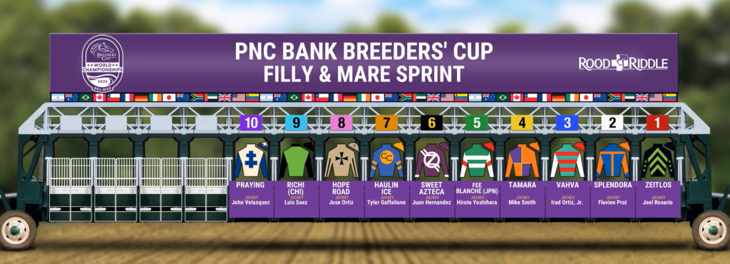 Update 10/27/2025 7:48 PM ET: The first of Saturday’s Breeders’ Cup races is now set, as post positions for the Filly & Mare Sprint (G1) have been announced. Expect the draw to continue in the next few minutes with the remaining Saturday championship events.