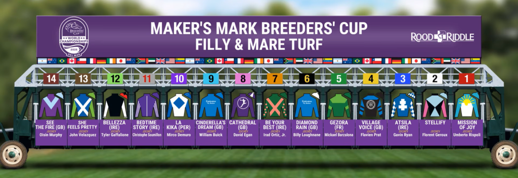 Update 10/27/2025 8:21 PM ET: The final draw of the night is complete for the Breeders’ Cup Filly & Mare Turf (G1).