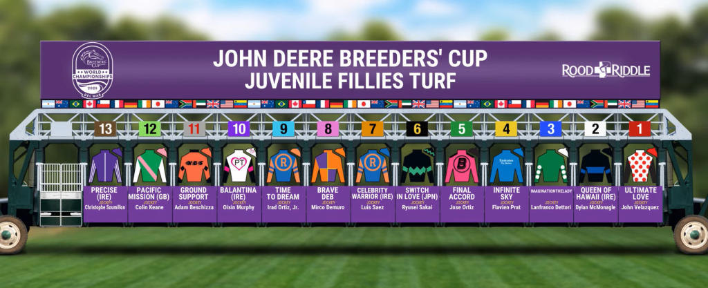 Update 10/27/2025 7:31 PM ET: The lineup is set for the Breeders’ Cup Juvenile Fillies Turf (G1). Headlining the field are Final Accord, Infinite Sky, and Ultimate Love.