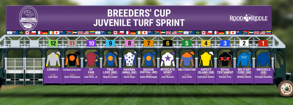 Update 10/27/2025 7:26 PM ET: The official field for the Breeders’ Cup Juvenile Turf Sprint (G1) is set, featuring Obliteration, Intricate Spirit, True Love, and Brussels among the key contenders.